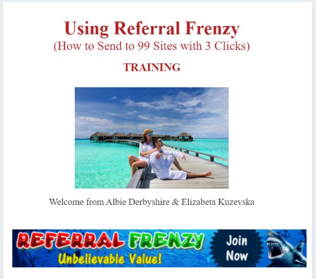 A couple weeks ago, I made a training of how to use Referral Frenzy. It will teach you how to set it up, how to send your ads and what tricks and tactics we use to get the most out of it!